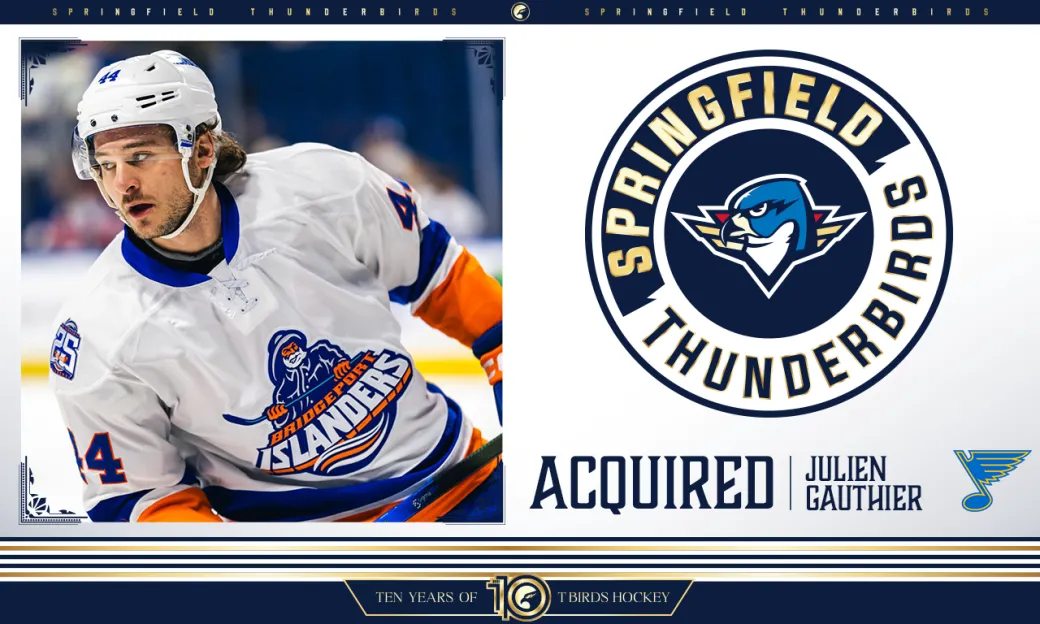 ST. LOUIS, MO - St. Louis Blues President of Hockey Operations and General Manager Doug Armstrong announced today that the team has acquired forward Julien Gauthier from the New York Islanders in exchange for forward Matt Luff. Gauthier will report to the Blues’ AHL affiliate, the Springfield Thunderbirds.
