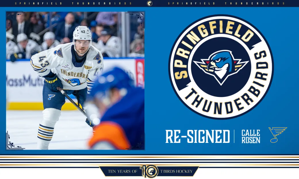 This season, the Vaxjo, Sweden native has posted 26 points (seven goals, 19 assists) in 46 games with the Blues’ AHL affiliate, the Springfield Thunderbirds, as well as seven points (one goal, six assists) in nine games with the AHL’s Hershey Bears.