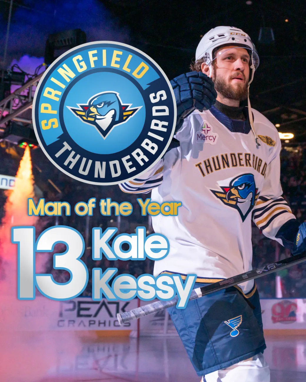 SPRINGFIELD, Mass. - The Springfield Thunderbirds are proud to announce that Kale Kessy has been named the team's winner of the IOA/American Specialty AHL Man of the Year award for his oustanding contributions to the Springfield and Western Mass communities during the 2025-26 season. This marks the third time the veteran forward has earned the honor; Kessy also earned Hershey's Man of the Year honors in 2019-20 and Iowa's Man of the Year distinction in 2023-24.