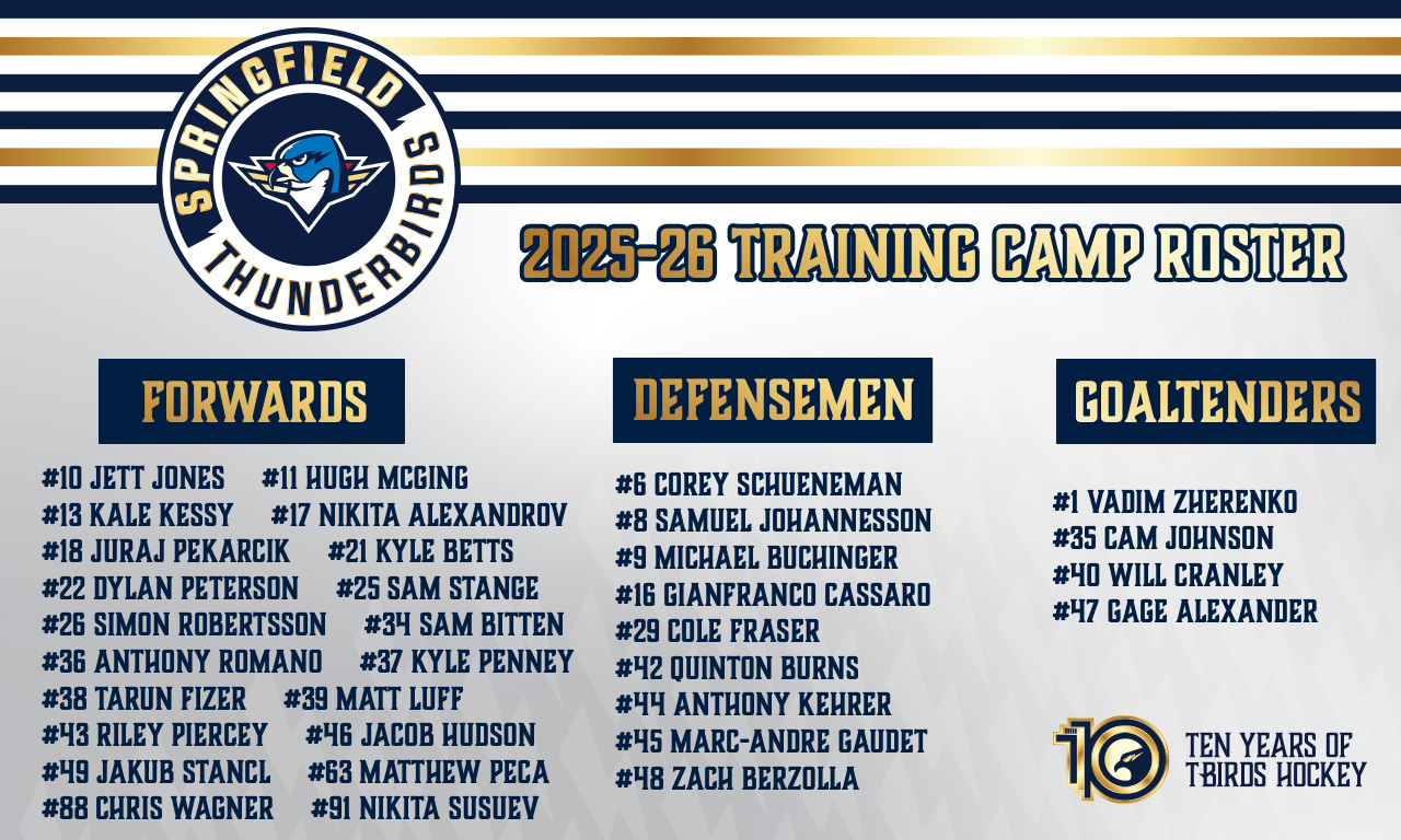 SPRINGFIELD, Mass. – The Springfield Thunderbirds announced their initial training camp roster ahead of the 2025-26 season today.