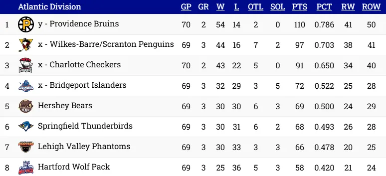 If Springfield were to win in overtime or a shootout on Wednesday, their magic number would sit at 1 heading into their final two games of the season against the Hartford Wolf Pack; the remaining schedule is as follows: