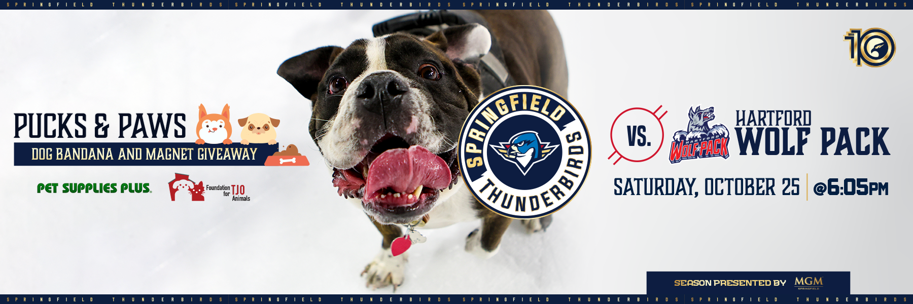 The Thunderdome turns into the doghouse when the T-Birds welcome the Hartford Wolf Pack on Saturday, Oct. 25 at 6:05 p.m.! Proceeds from all “dog tickets” will once again benefit the Foundation for TJO Animals.